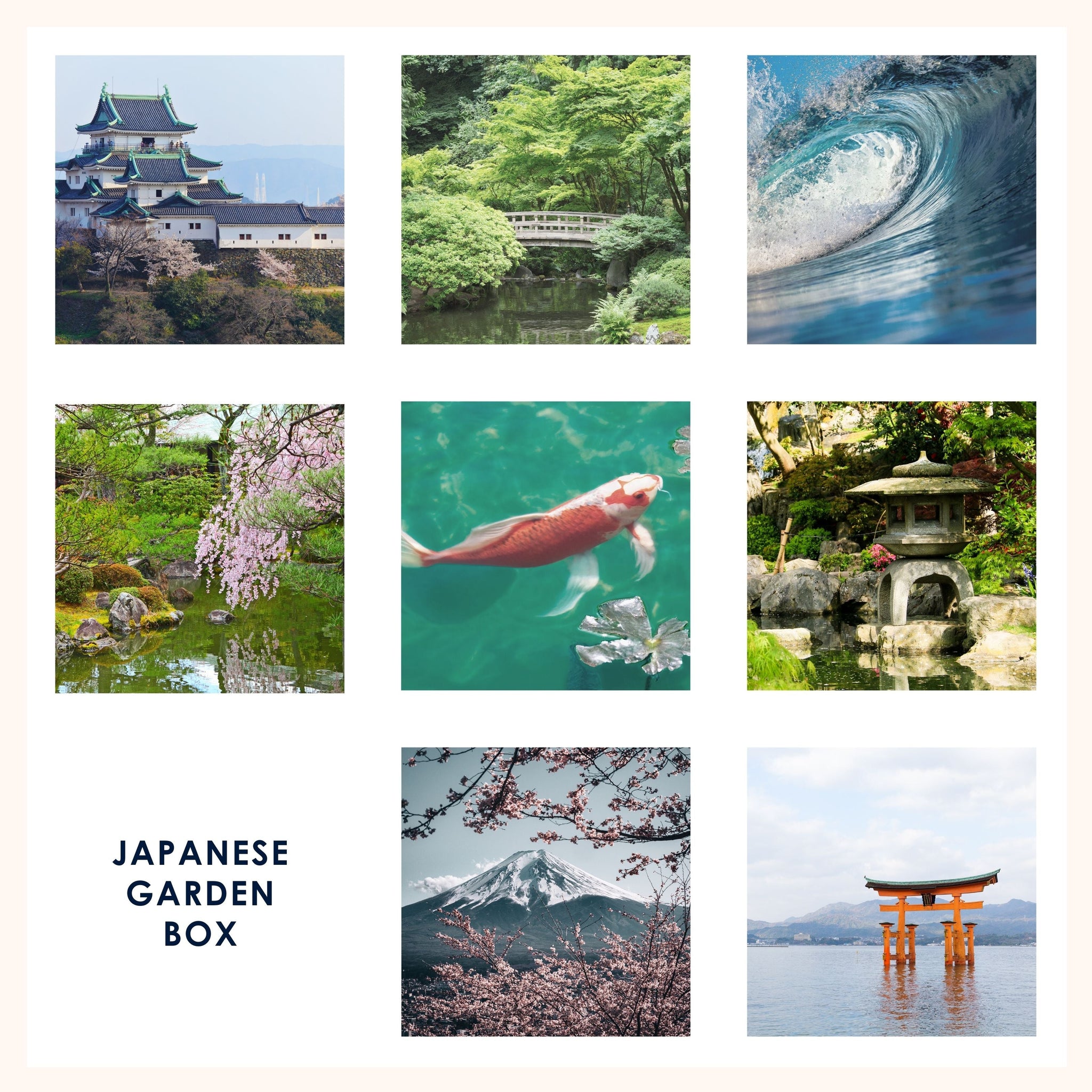 Inspired by the beauty, pattern, and textures of Kaiyū-shiki-teien, or stroll gardens, this box features a more muted color story.